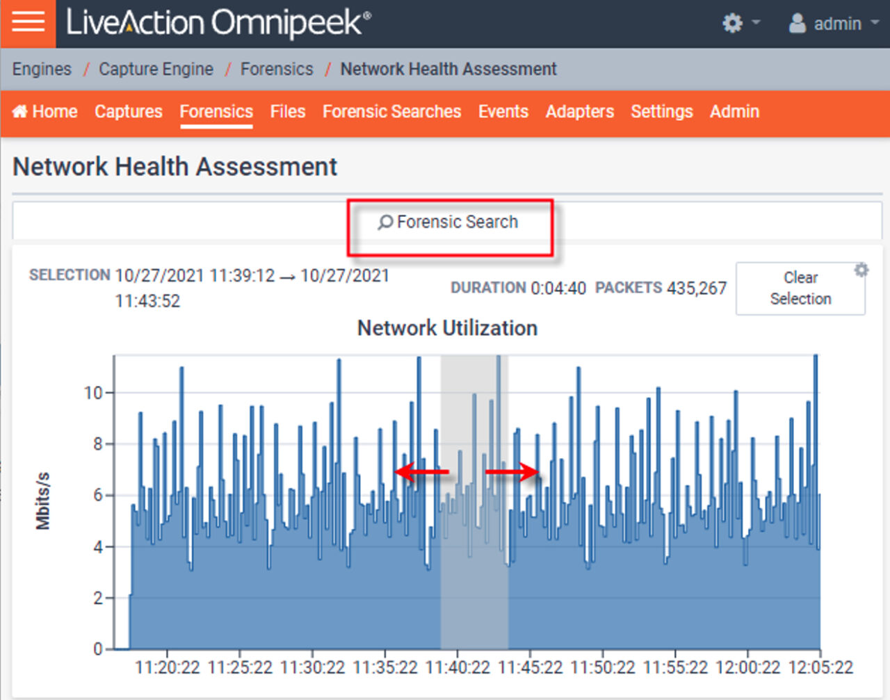 Go to the Forensics View and select a reasonable range of time, which would be less than a million packets or so. More packets are fine, but the more packets in the result, the longer the forensic analysis will take.