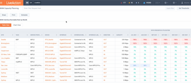 Ensure your service providers and third-party vendors are hitting their SLAs with service-assurance verification from LiveNX. Verify and report on service assurance KPIs with capacity reporting.