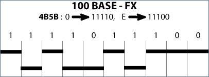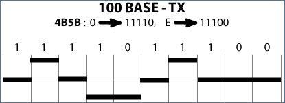 A number of ways are defined for representing a bit stream with an electrical signal. In the 10 Mbps Ethernet section of the Compendium there is a description of Manchester encoding. In 100 Mbps Ethernet there are several different encoding schemes that are available. The one that is used depends on the specific implementation being engineered. These are not interchangeable standards.