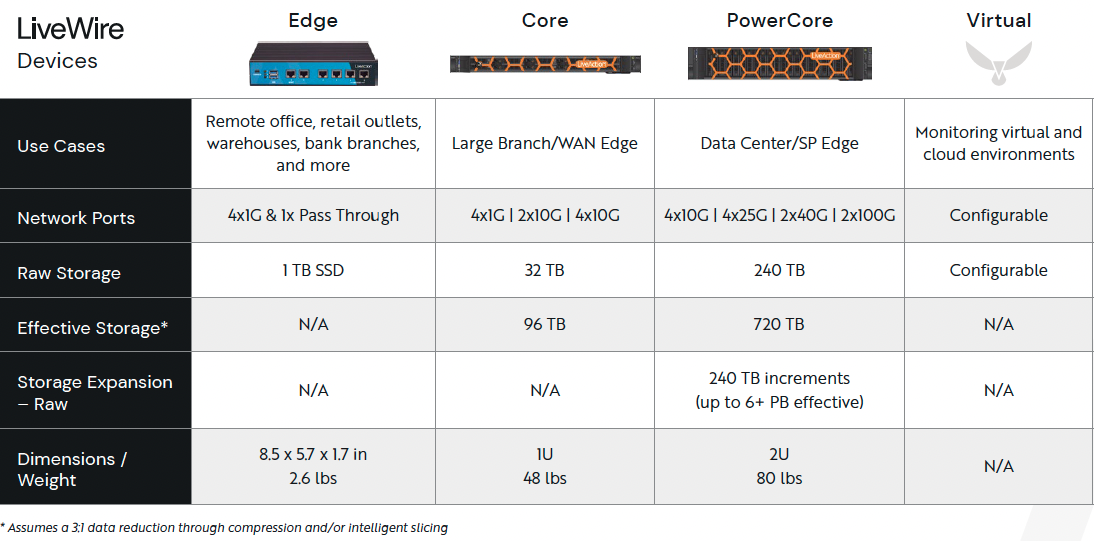 LiveAction is introducing new LiveWire Core and LiveWire PowerCore appliances that deliver a tremendous increase in performance and storage capacity: