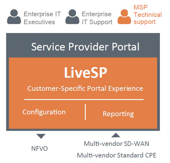 LiveSP provides highly customizable enterprise network deployments for the digital era, which help differentiate your managed service offerings, tailoring each enterprise implementation to customers’ unique business needs. It delivers on: