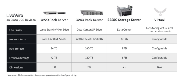 LiveWire running on Cisco UCS hardware is a high-performance and high-capacity packet analysis solution that captures and stores detialed packet data for network and application performance and forensic insights. By deploying LiveWire on Cisco UCS in your most critical network segments, your NetOps and SecOps teams have the data they need to ensure the performance and security of the network.