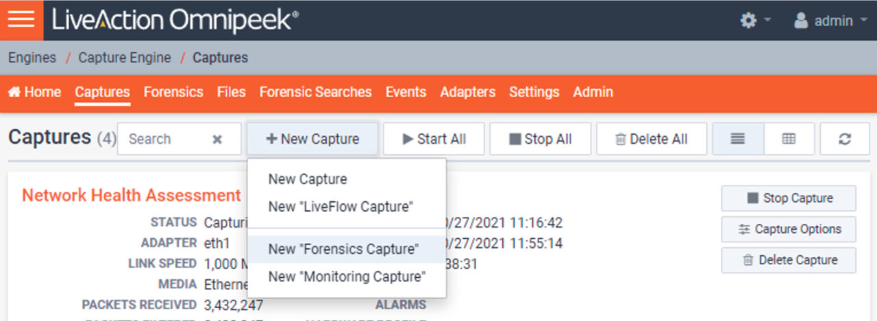 Once LiveWire is installed and running, create a capture on the interface where the traffic of interest is.