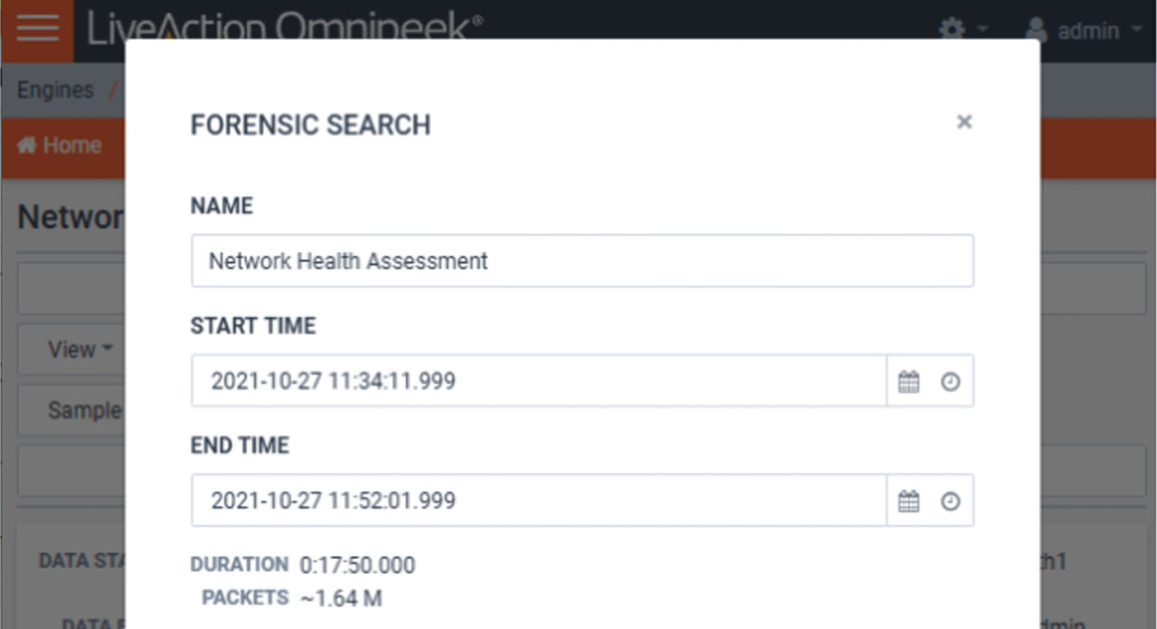 Once the range of time is selected, hit the Forensic Search button at the top right. In the Forensic Search Dialog, name the forensic search something unique, and hit ok.