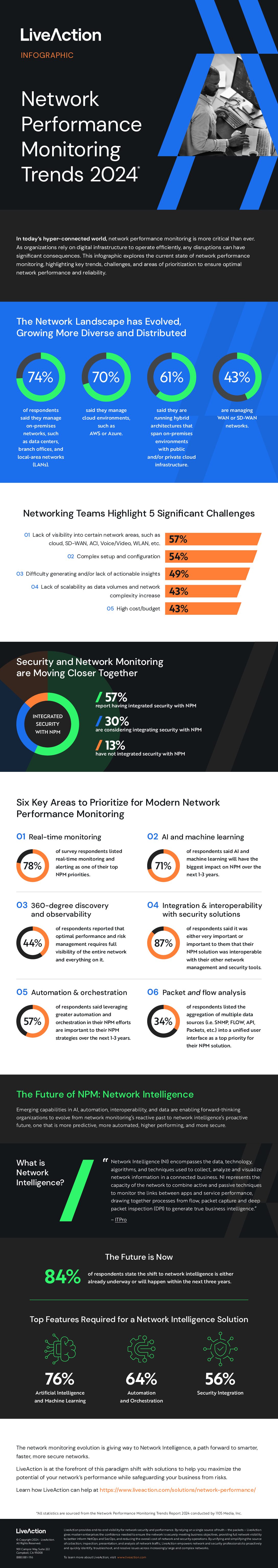 However, the complexity and architecture of modern networks have evolved, incorporating cloud, hybrid, and edge computing, thus increasing the challenge of network management due to sophisticated risks and outdated legacy systems. In this infographic, we show how Innovations in AI, automation, and security integration are leading a shift towards more intelligent network management, addressing the inadequacies of traditional monitoring methods.