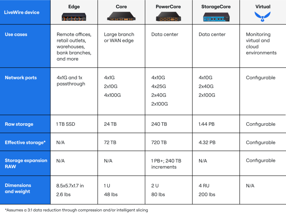 LiveWire offers both virtual and physical appliance configurations that allow you to deploy high-speed packet capture where it is needed most and with the right level of performance.