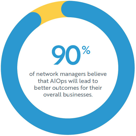 Artificial intelligence for IT operations (AIOps) is the next step in this platform approach to network data. More than 90% of network managers believe that applying AIOps technology to network management will lead to better outcomes for their overall businesses.2 AIOps involves the application of artificial intelligence and machine learning to IT management. In networking, AIOps can streamline and automate network operations.