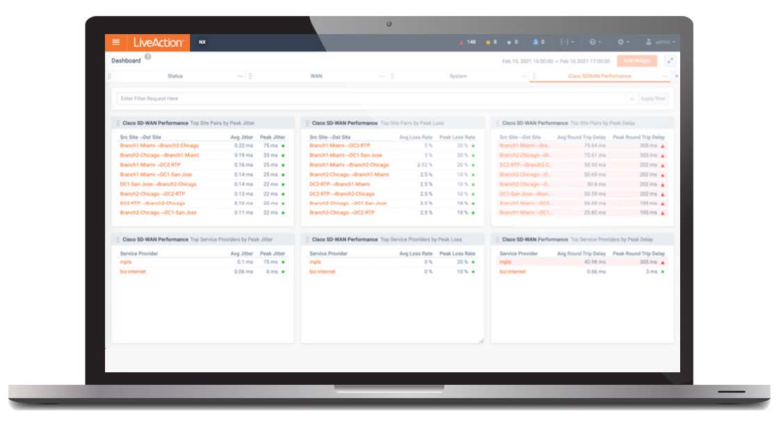 Plan, verify, and operate your SD-WAN service successfully with LiveAction’s LiveNX performance and analytics platform. LiveNX integrates with Cisco SD-WAN to ensure key application performance is baselined, and network policies and configurations deliver the targeted application behavior.